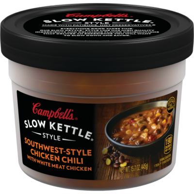 Savor the flavor of Campbell's Slow Kettle Style Southwest-Style Chicken Chili with White Meat Chicken soup, crafted by our chefs with high-quality and carefully-selected ingredients delivering restaurant quality soup experience in the comfort of your own home.